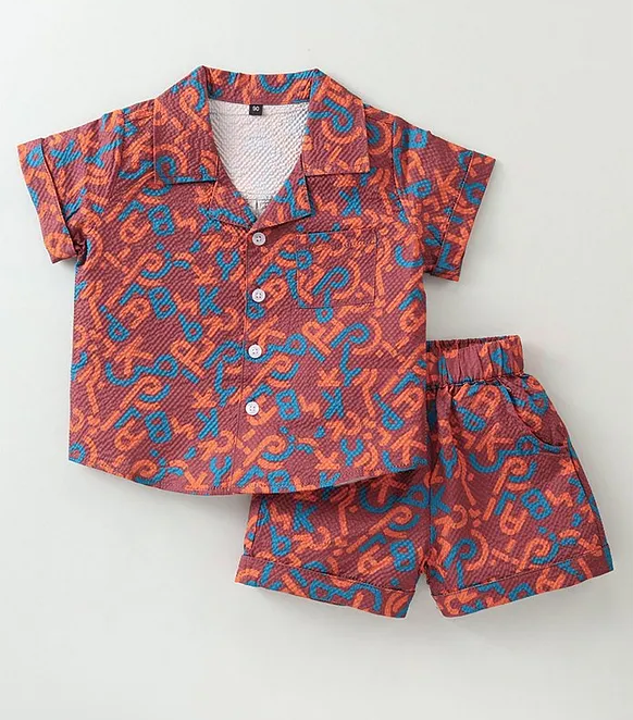 Half Sleeves Printed Shirt & Shorts Set (Size-4-5YEAR) (Color-ORANGE)