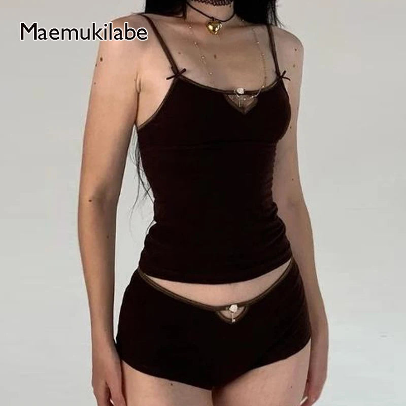 Maemukilabe Women 2 Piece Set Kawaii Spaghetti Strap Camis Crop Tops +