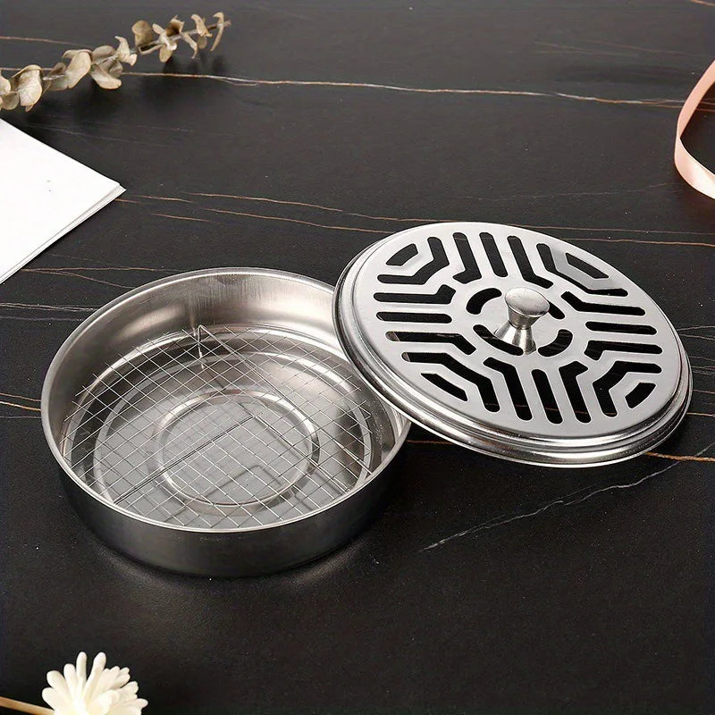 Mosquito Coils Holder Stainless Steel Mosquito Coil Box with Cover Round Mosquito Coil Tray Easy To Clean Anti-Mosquito Supplies