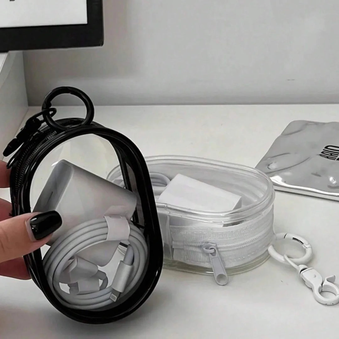 Multi Functional Storage Bag Transparent Data Cable Charger Storage Box Portable Zipper Dustproof Storage Box Small Doll Storage