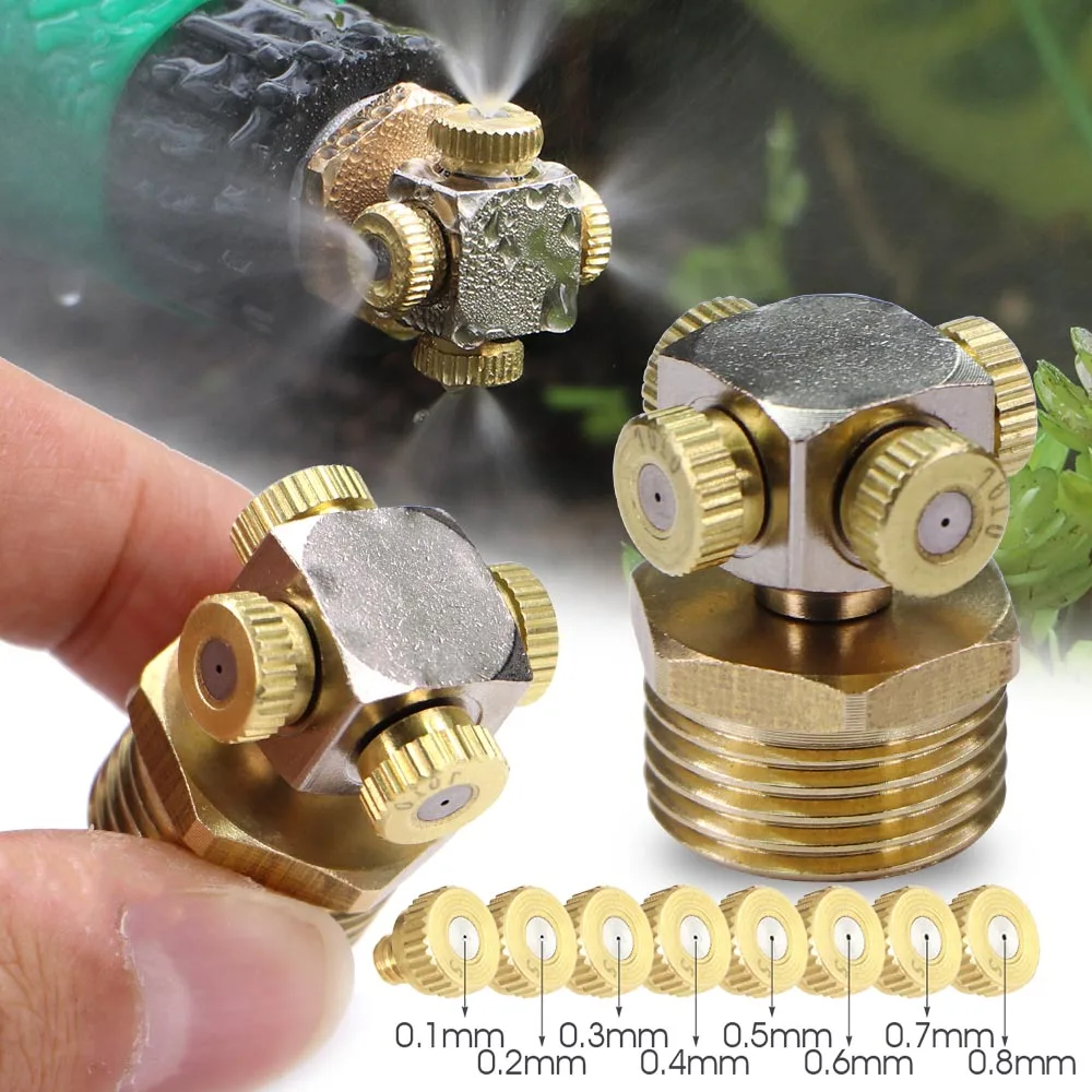 0.1-1.0mm 4-holes Fine Atomizer Sprayer Misting Nozzle 1/2" 20mm Brass Joint Humidification Cooling Garden Irrigation Watering