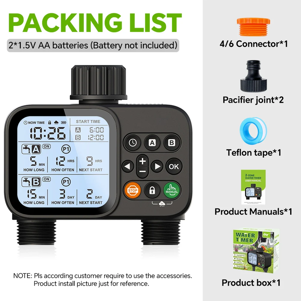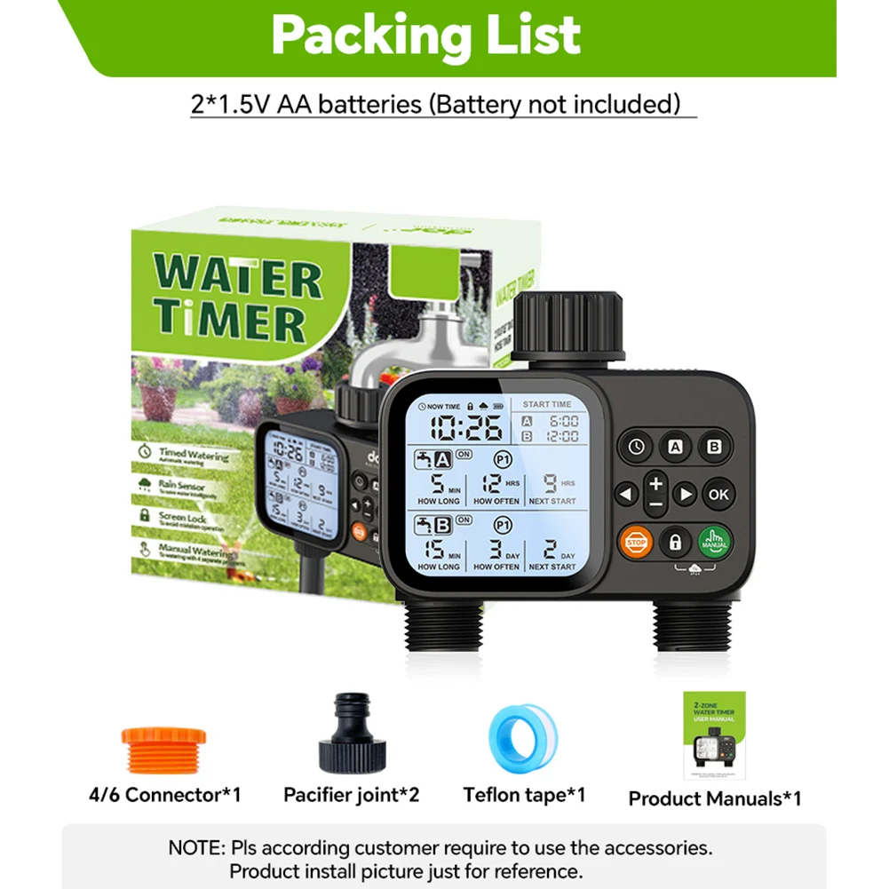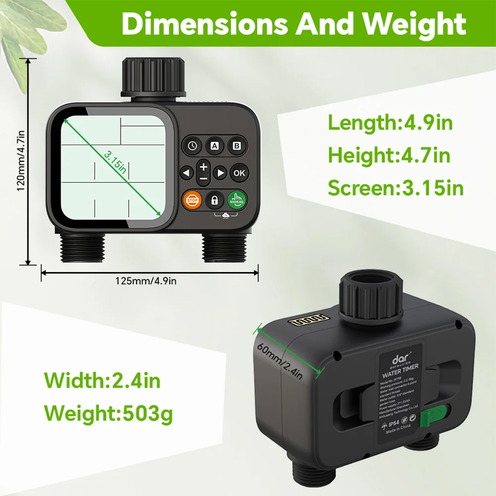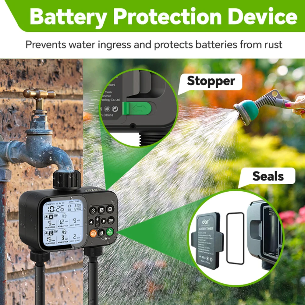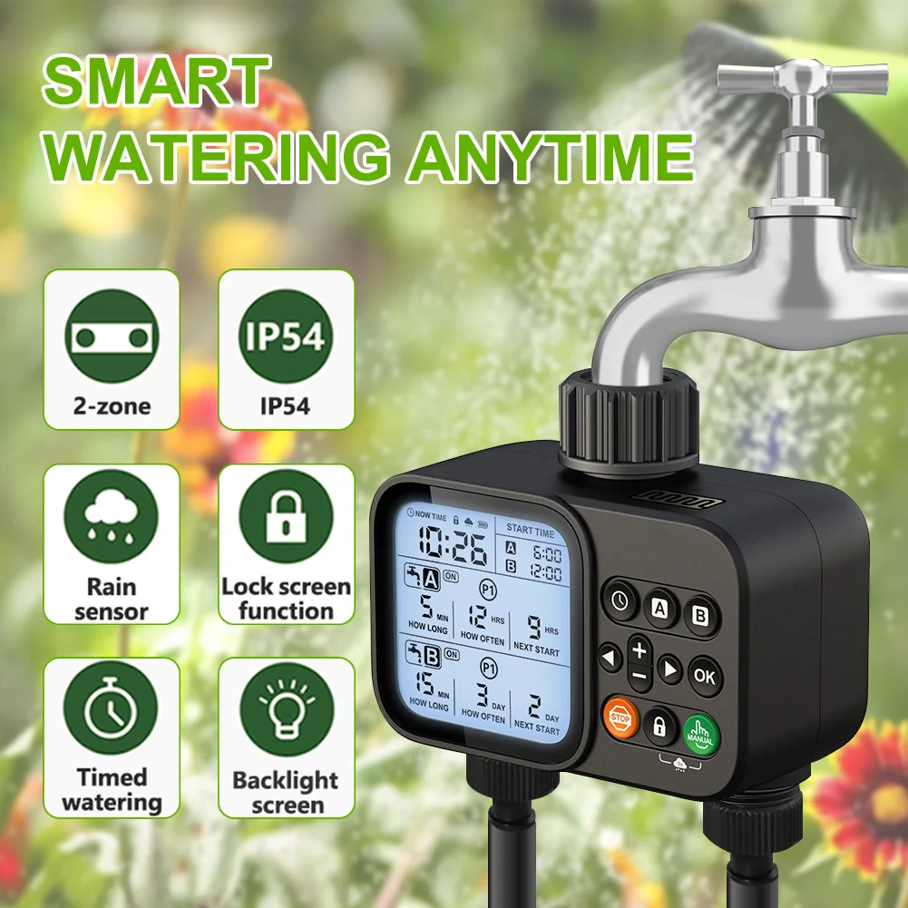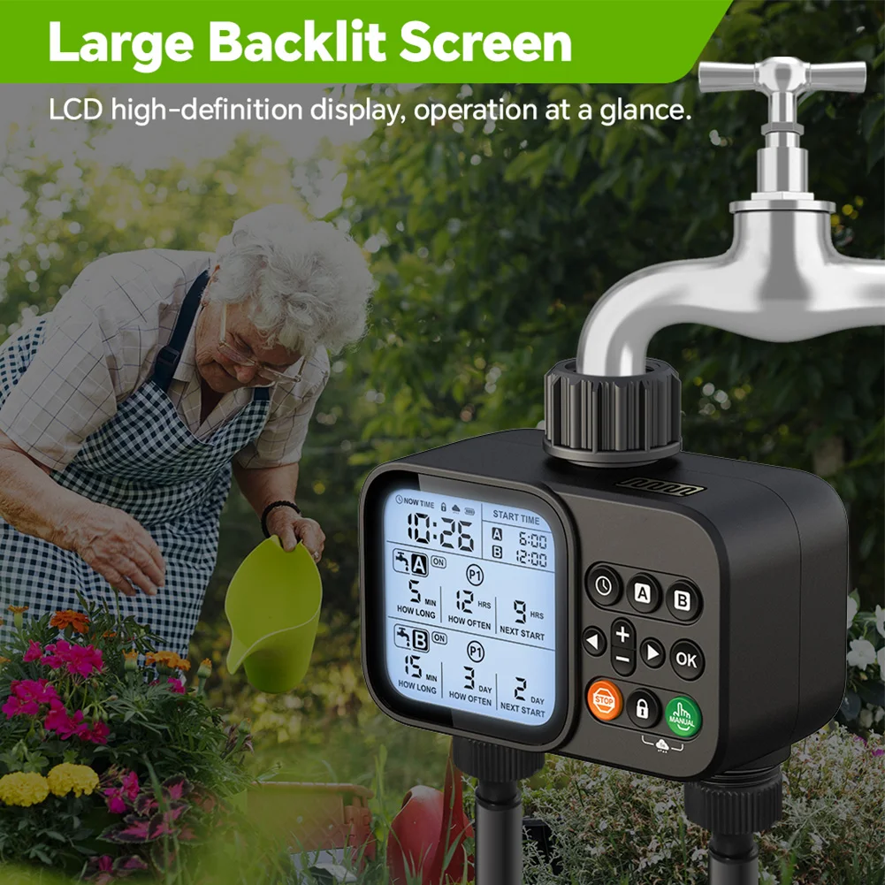 2-Outlet Water Timer Automatic Timed Irrigation System Outdoor Home Garden Lawn Greenhouse Sprinkler Tool