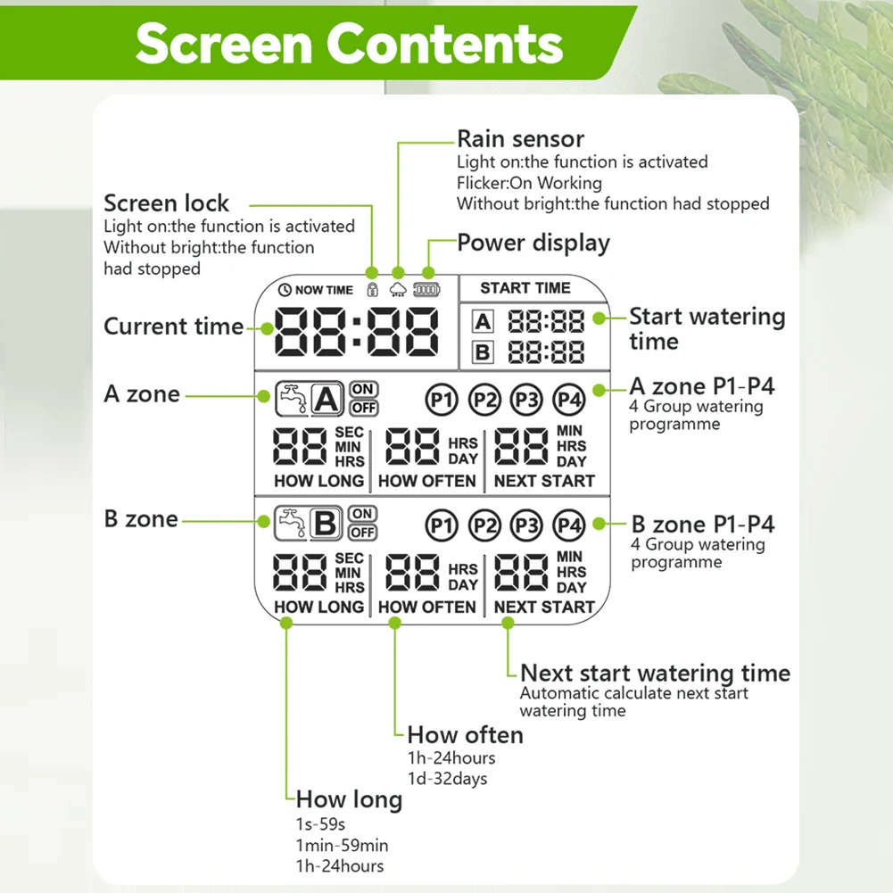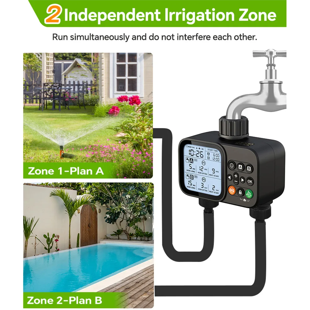 *2.2 independent irrigation zones, running at the same time, do not interfere with each other.