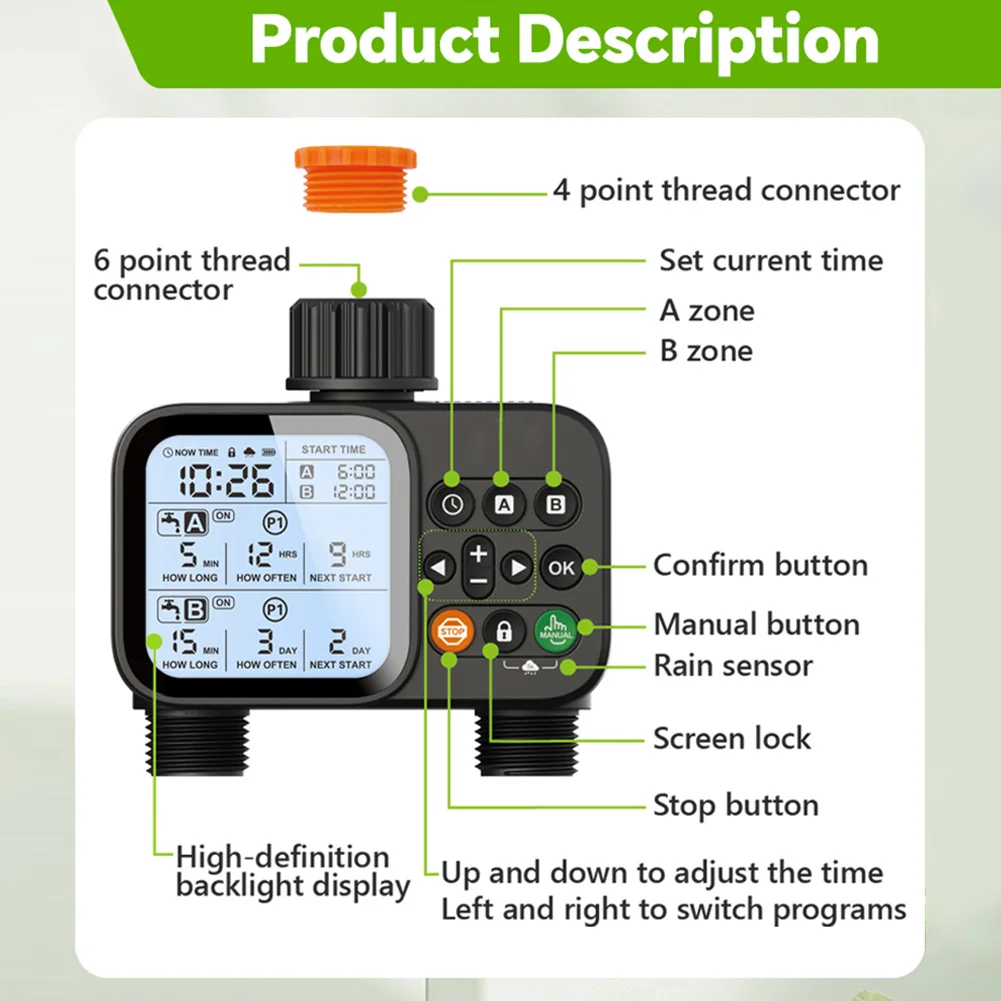 *5.Automatic processing, set it and forget it. Once you've programmed the timer you'll never have to worry about watering your plants again, keeping your garden green and fresh.