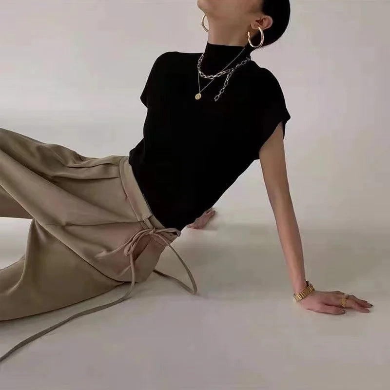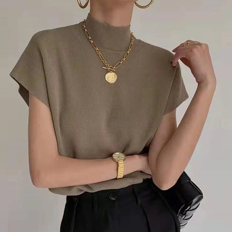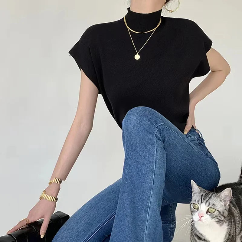 2024 Summer Solid Knit Shirt Vest Short Sleeve Feminine Elegance