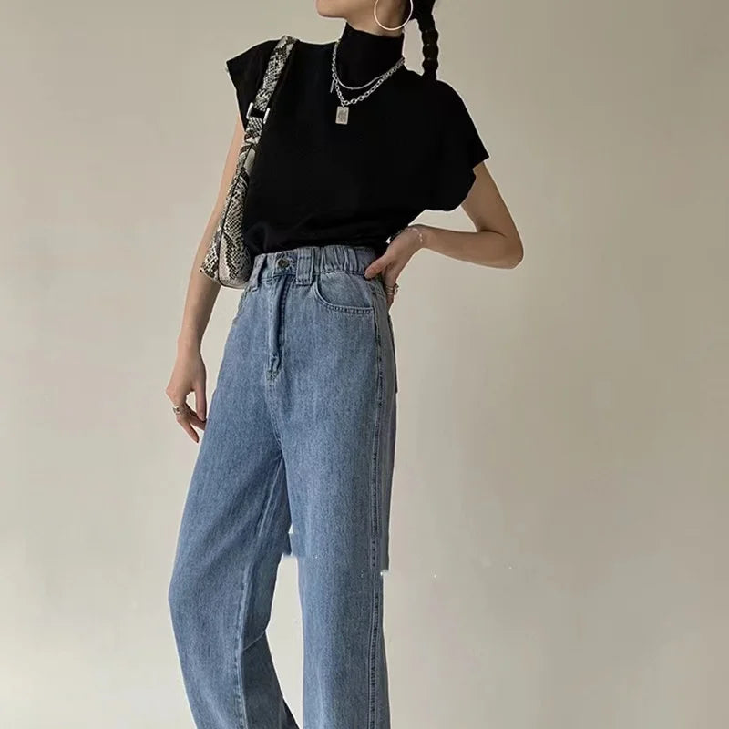 2024 Summer Solid Knit Shirt Vest Short Sleeve Feminine Elegance Casual T-Shirt Shirt Fashion Loose Clothing