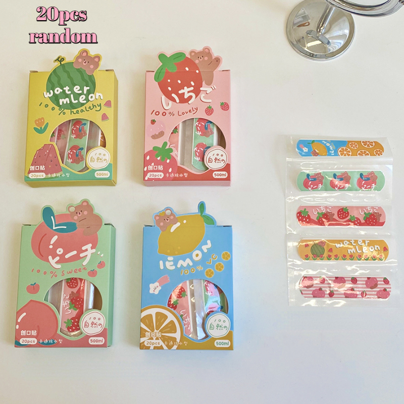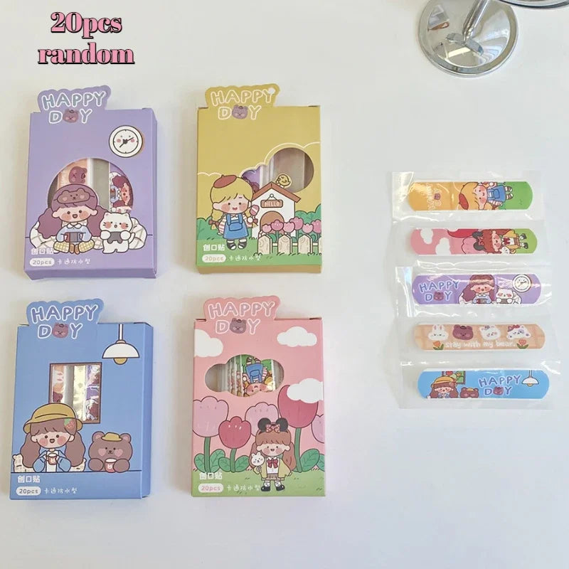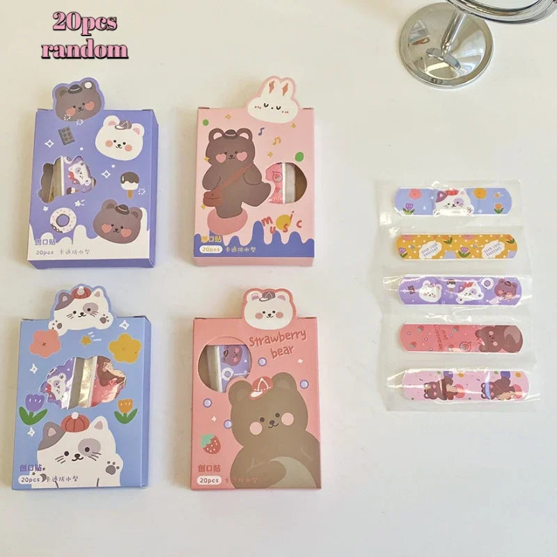 20pcs/lot Ins Creative Cartoon Band Aid Hemostatic Sticker Cute Breathable Waterproof Bandages First Aid Emergency Kit for Kids