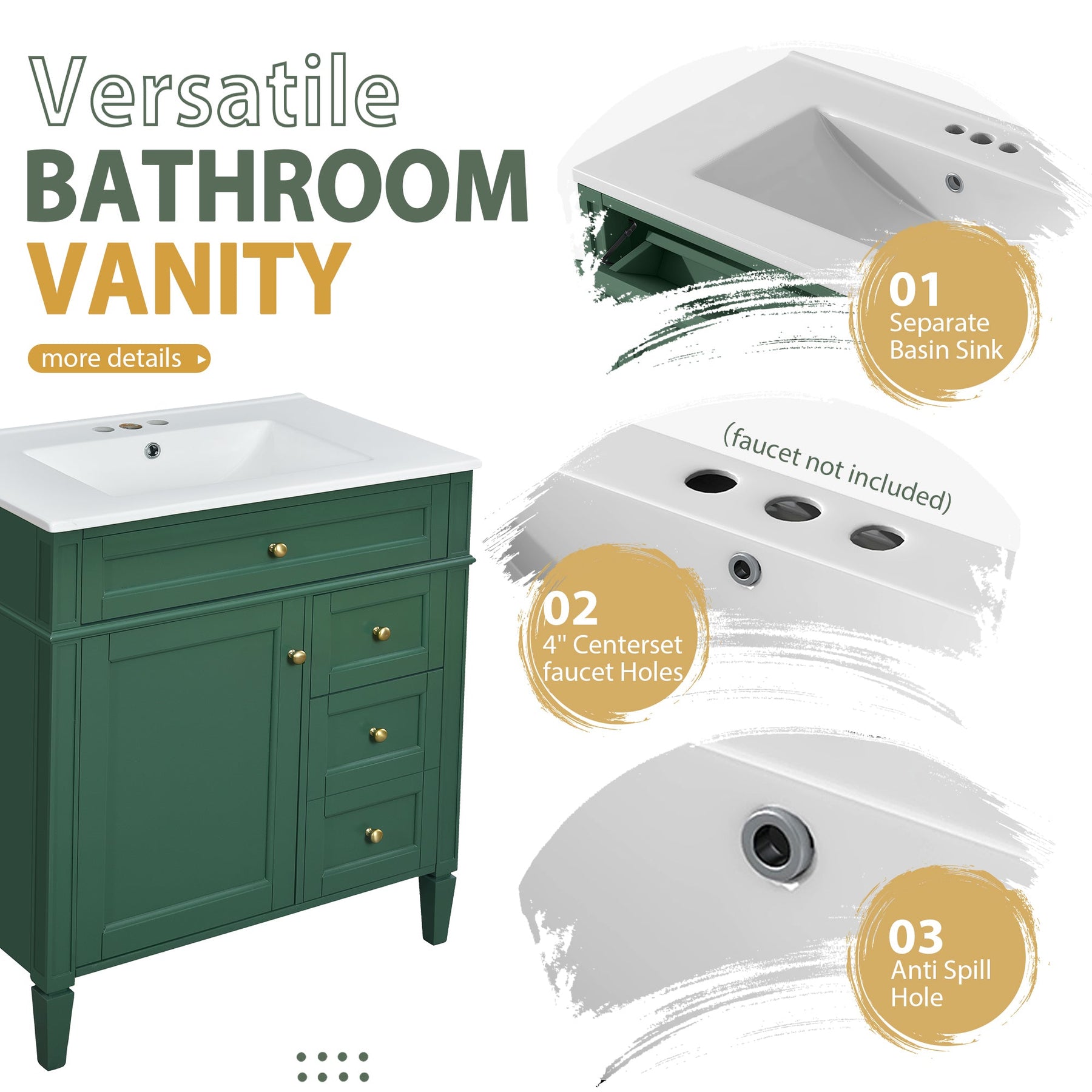 30'' Bathroom Vanity with Top Sink, Modern Bathroom Storage Cabinet
