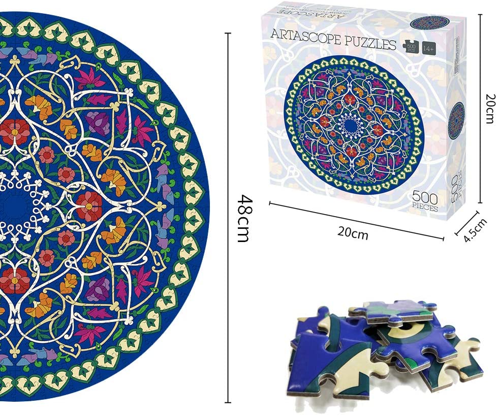 500 Piece Round Jigsaw Puzzles for Adults🧩 -- This puzzle is made up of 500 normal sized pieces, thicken cardboard and bright colors made the whole puzzle can be a art decor at home. Life is a kaleidoscope, colorful. 1,000 Hamlets of 1,000 readers is especially. 1,000 eyes of 1,000 worlds is especially, too. That's the essence of the puzzle.