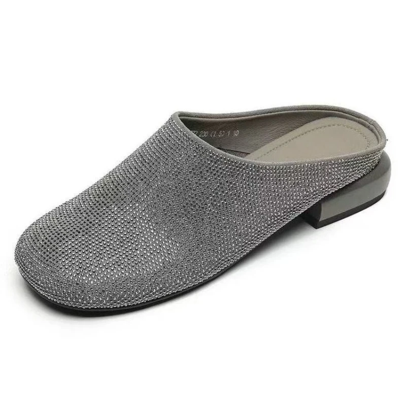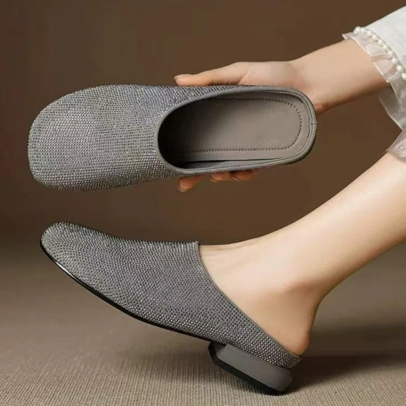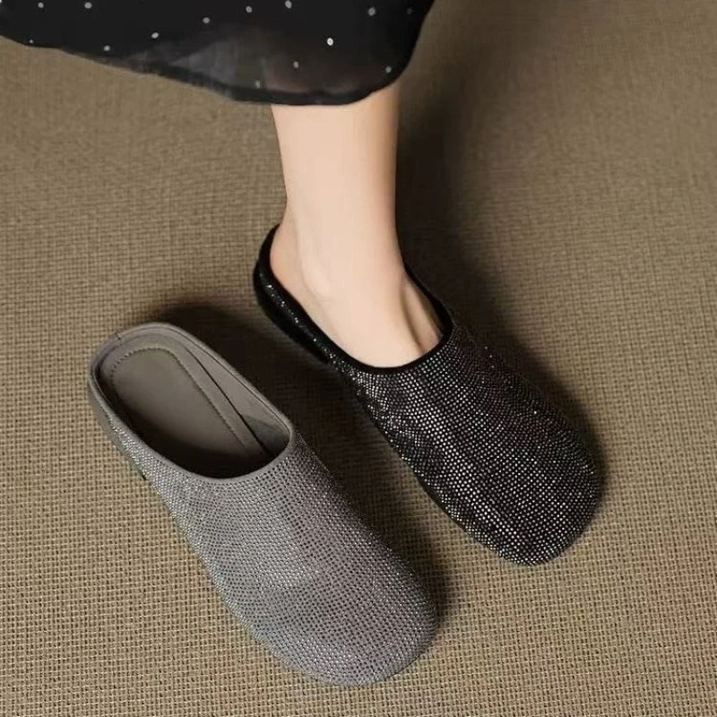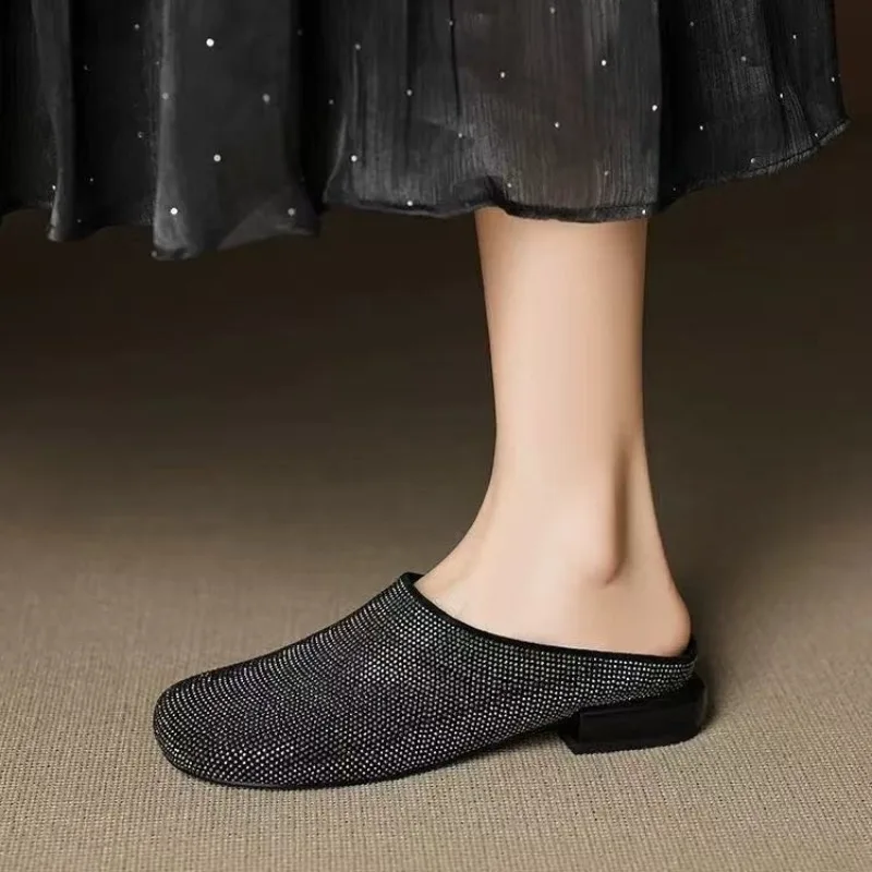 Baotou Slippers Summer New Round Toe Deep Mouth Sequin Soft Sole Non-slip Wear-resistant Fashion Square Heel Shoes
