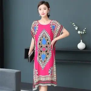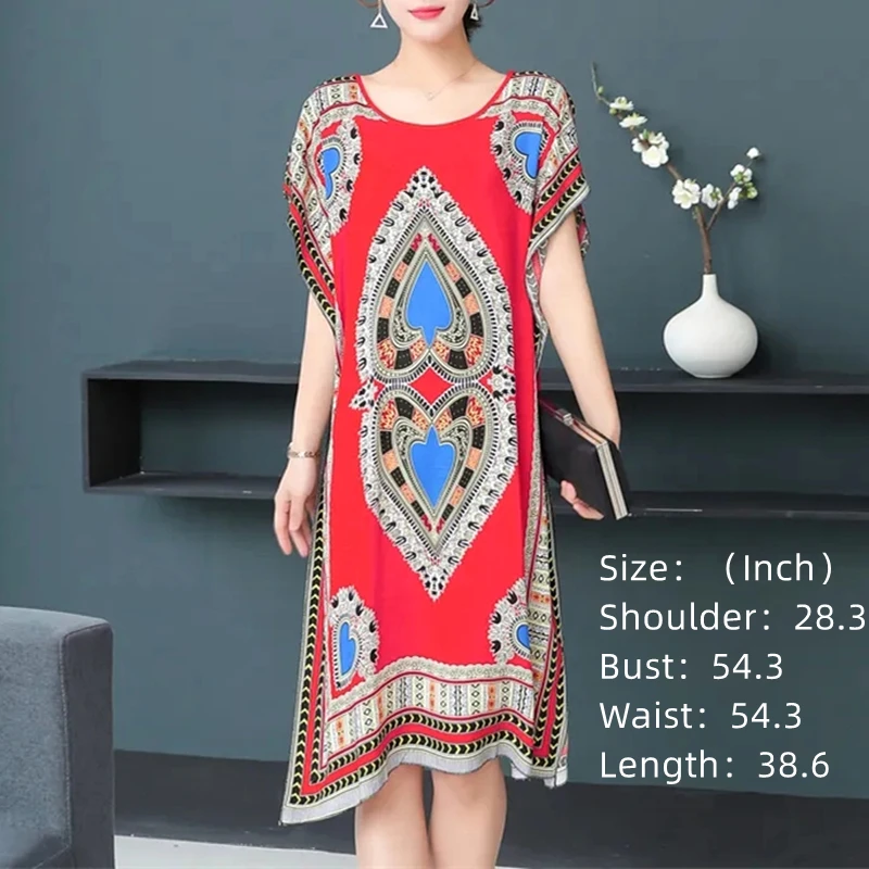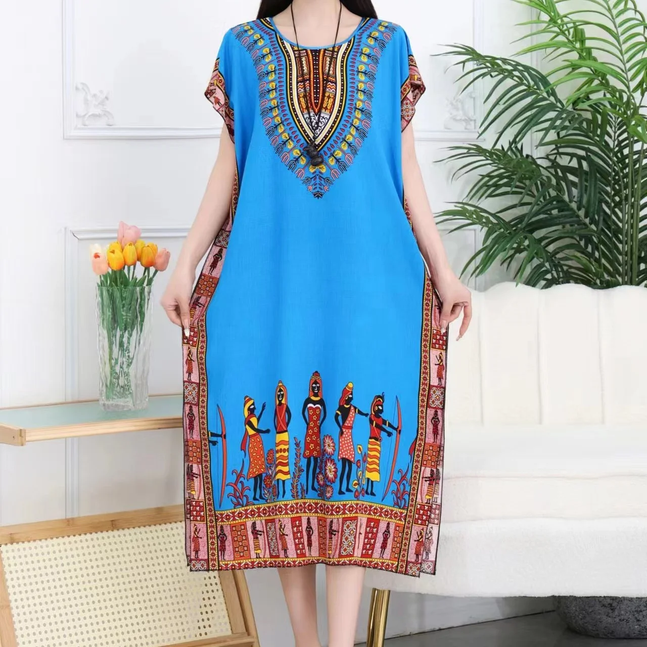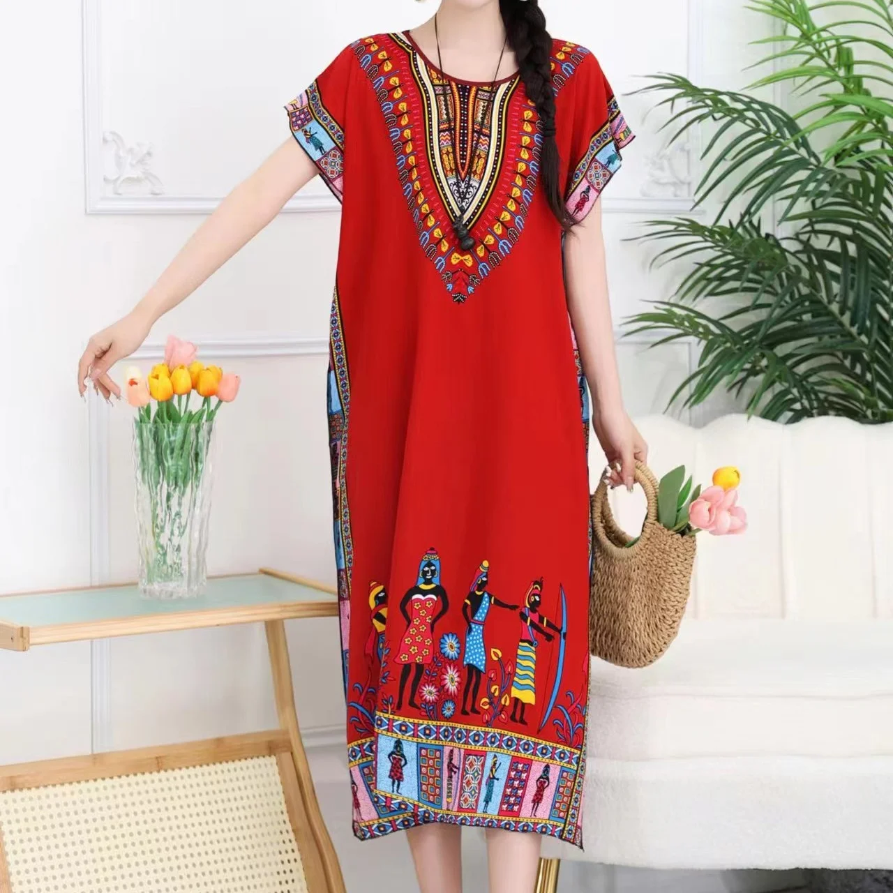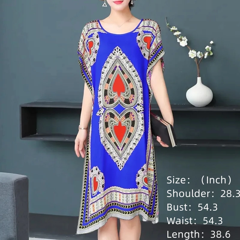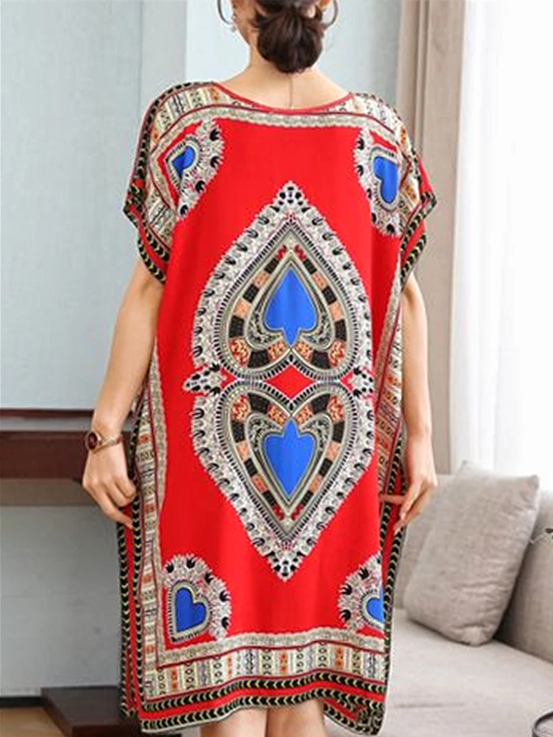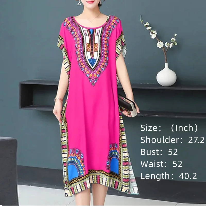 Casual Elegant Ethnic Style Retro Floral Round Neck Slit Straight Dress Summer Women's dress Midi dresses holiday dresses 2024
