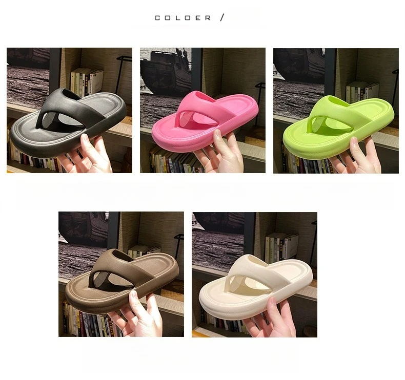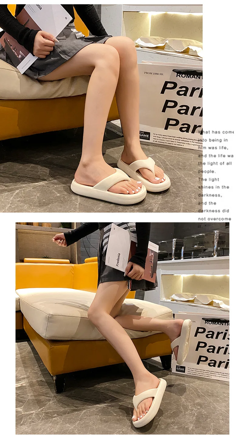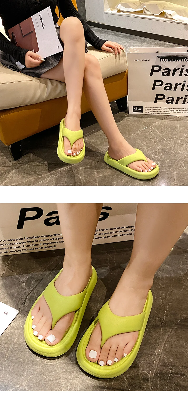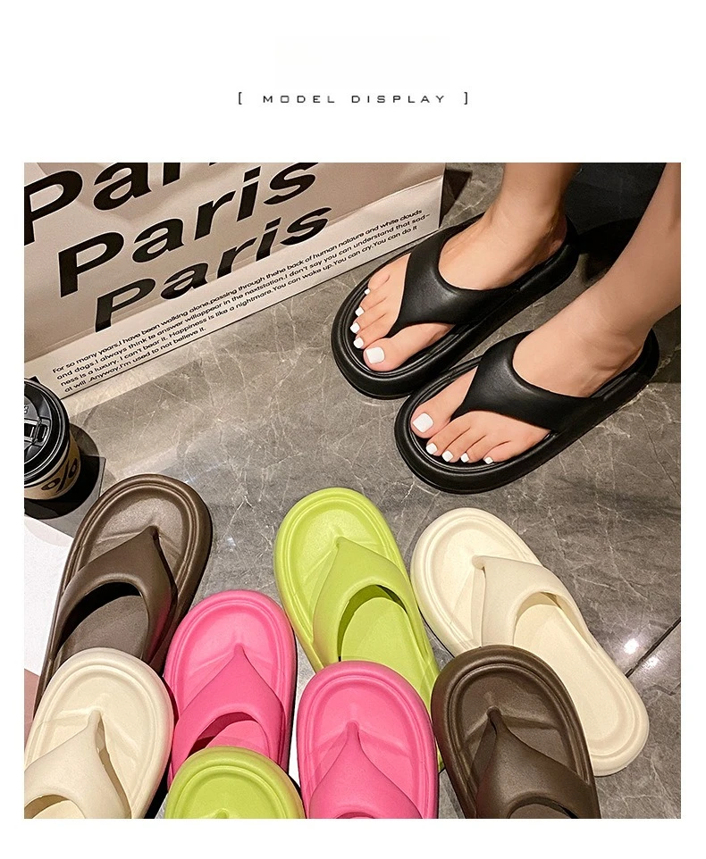 Female internet celebrity eva wears thick-soled, non-slip couple soft-sole foot-shelf beach slippers in summer