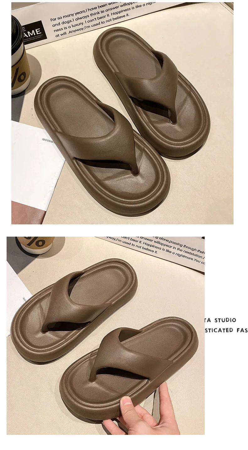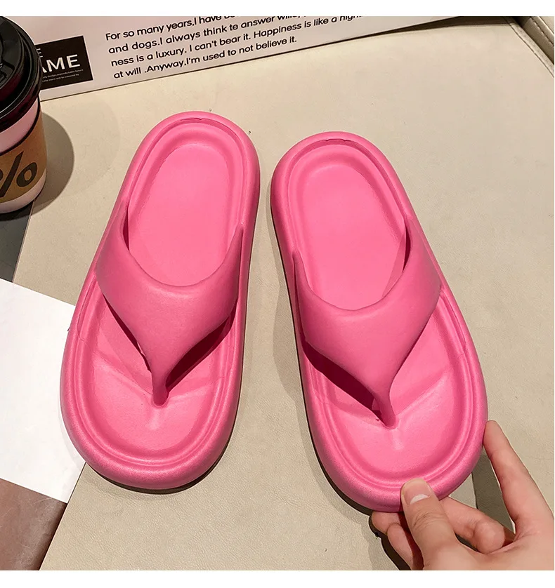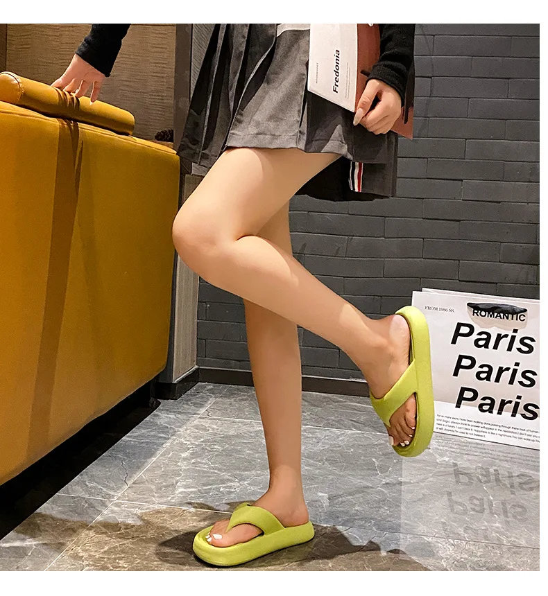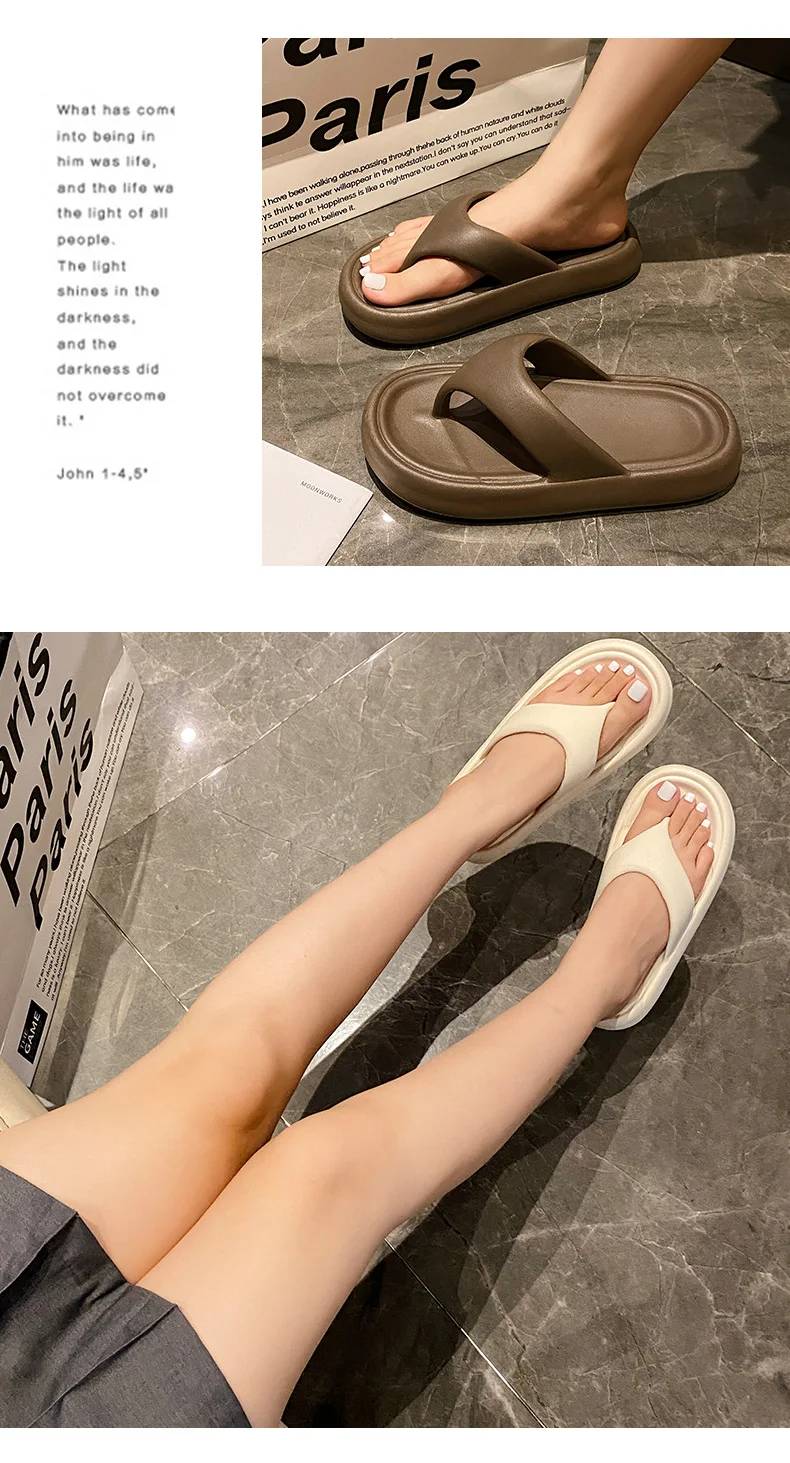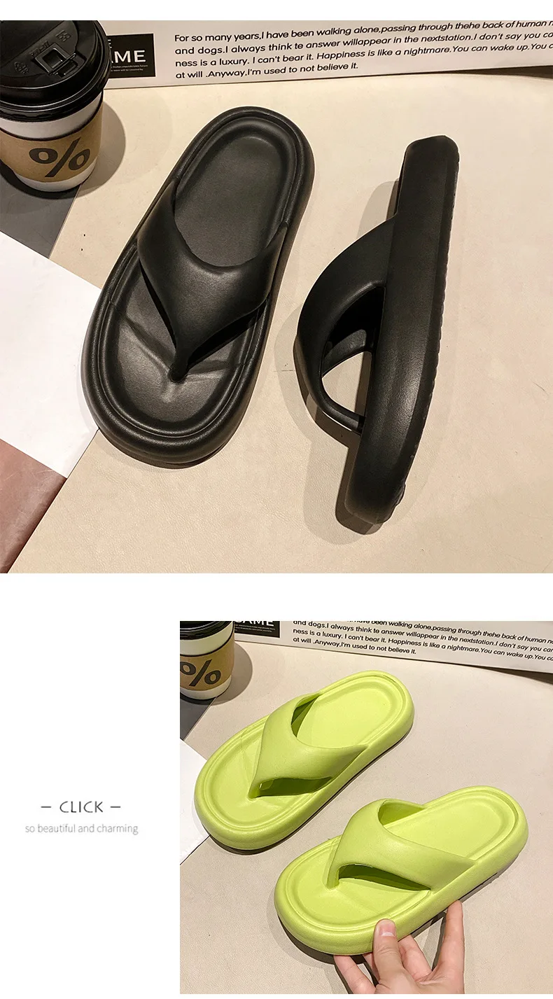 Female internet celebrity eva wears thick-soled, non-slip couple soft-sole foot-shelf beach slippers in summer