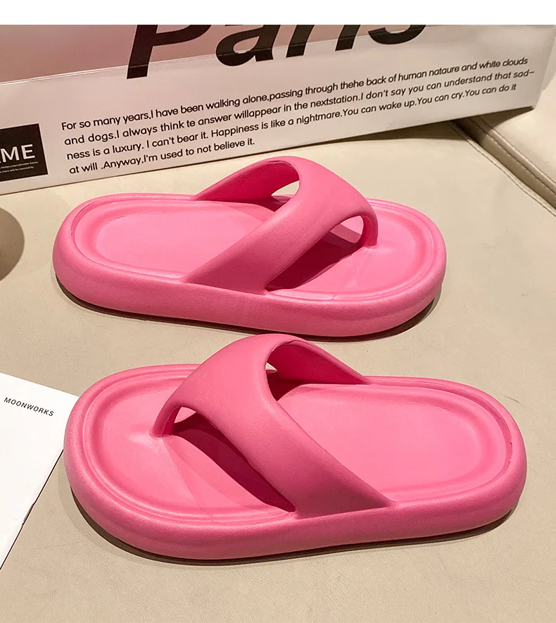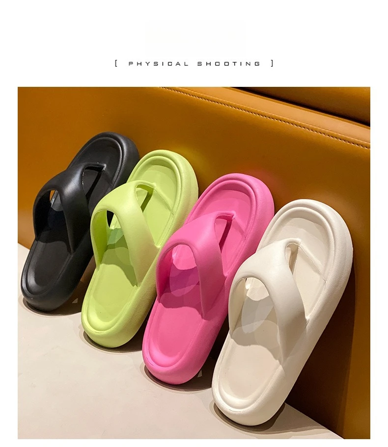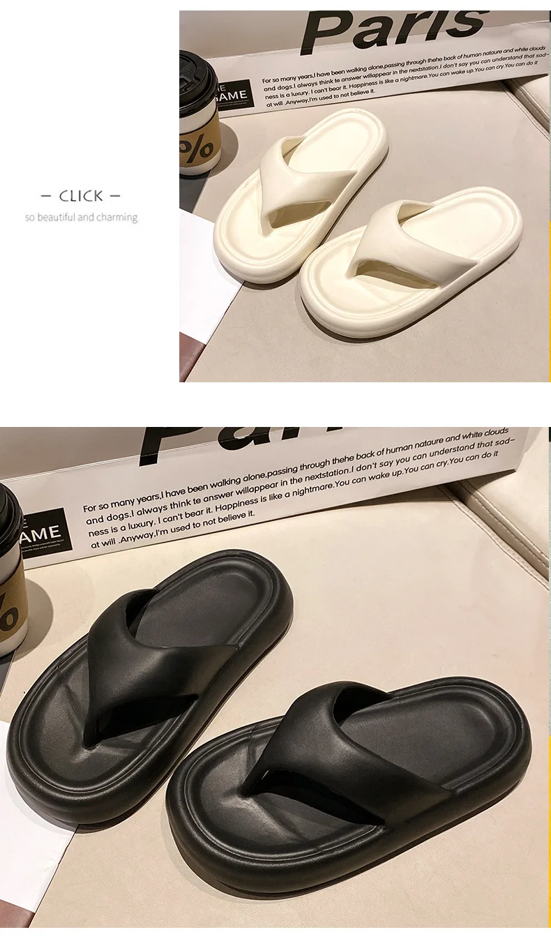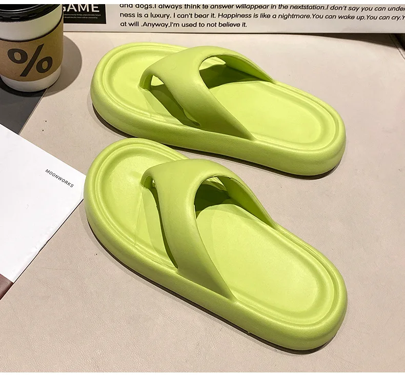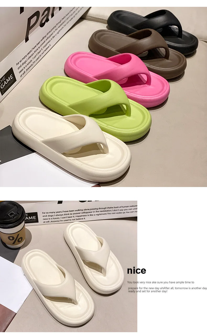 Female internet celebrity eva wears thick-soled, non-slip couple soft-sole foot-shelf beach slippers in summer
