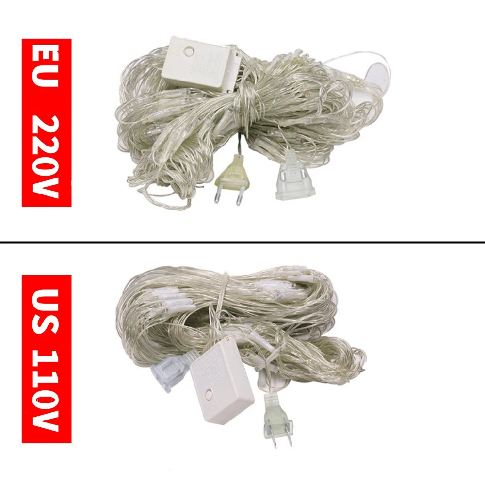 LED Net Mesh Fairy Light 1.5*1.5M 3*2M 6*4M 10*8M Outdoor Waterproof Curtain String Lamp 110V 220V Xmas Wedding Party Decor