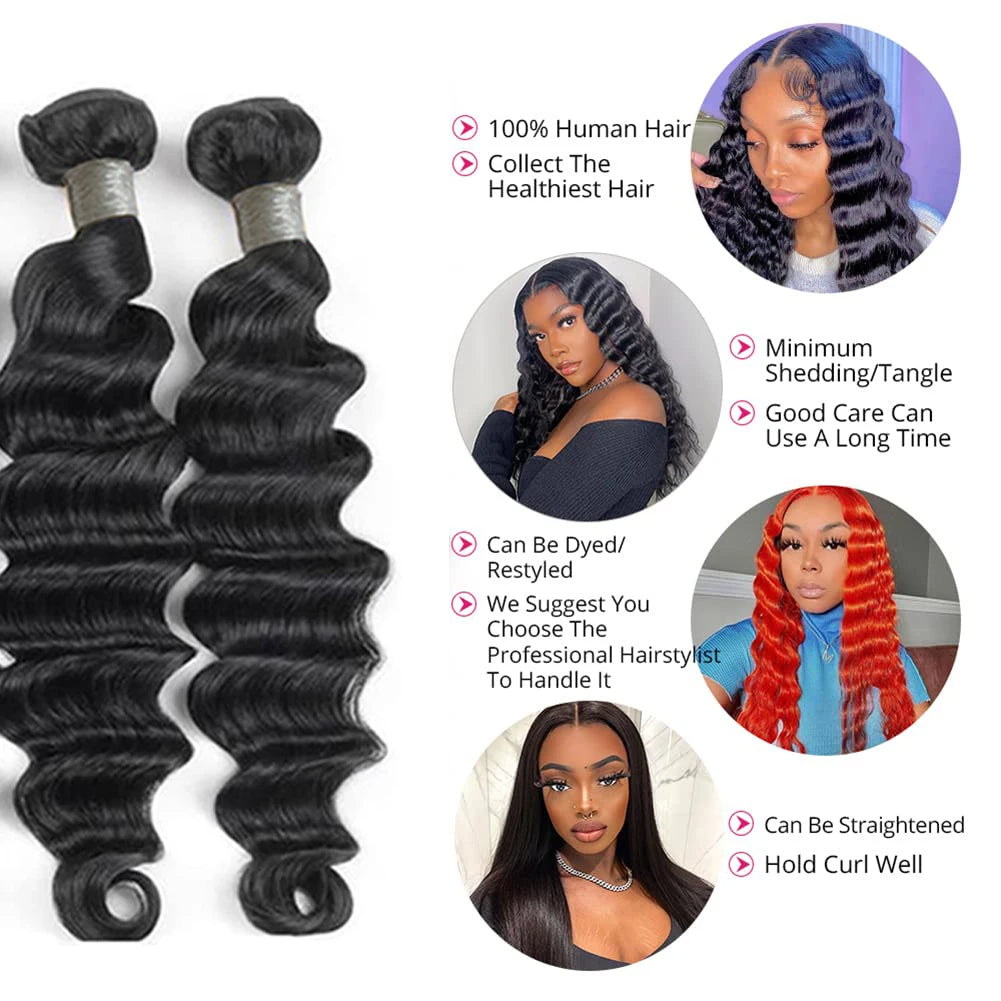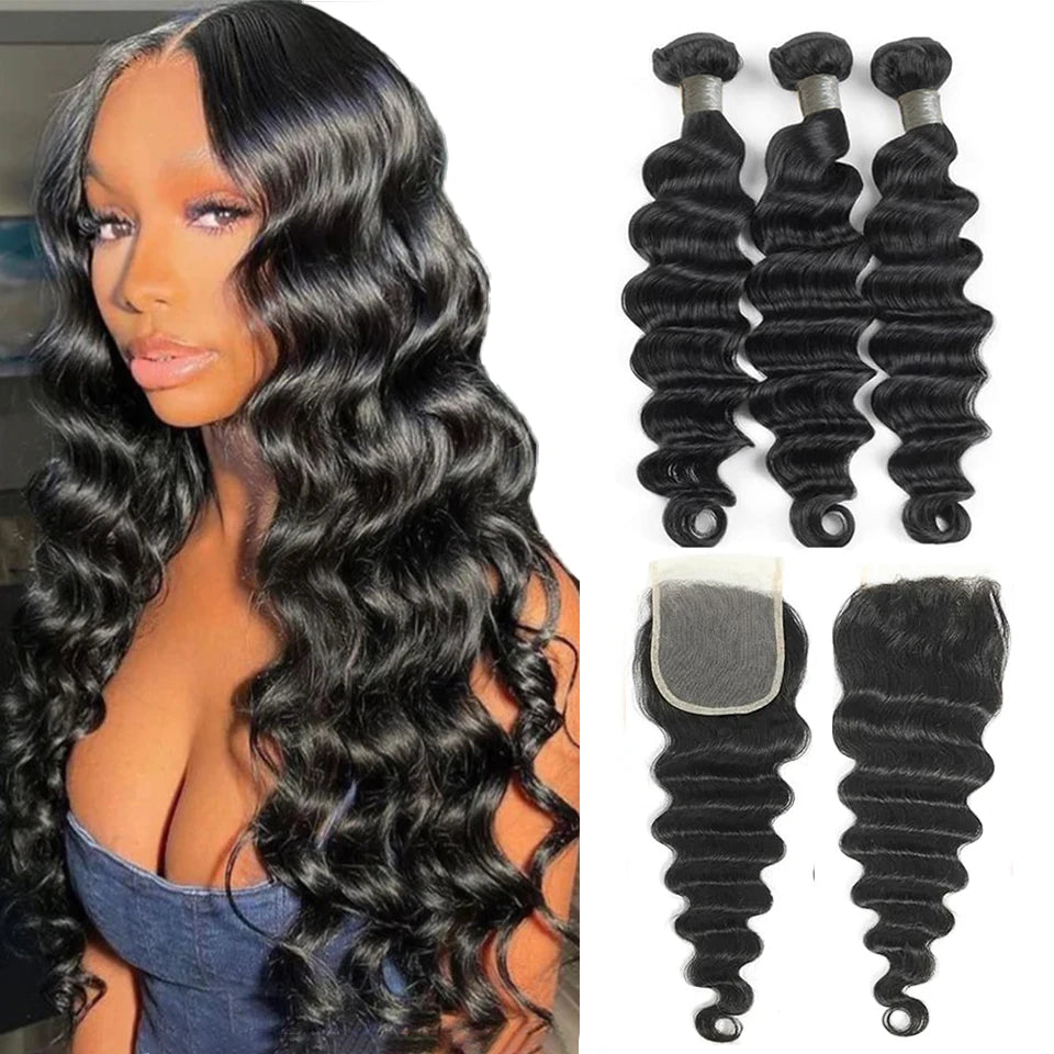 Loose Deep Wave Bundles With Closure Brazilian Remy Bundles Human Hair loose Deep curly human air weaves nature color