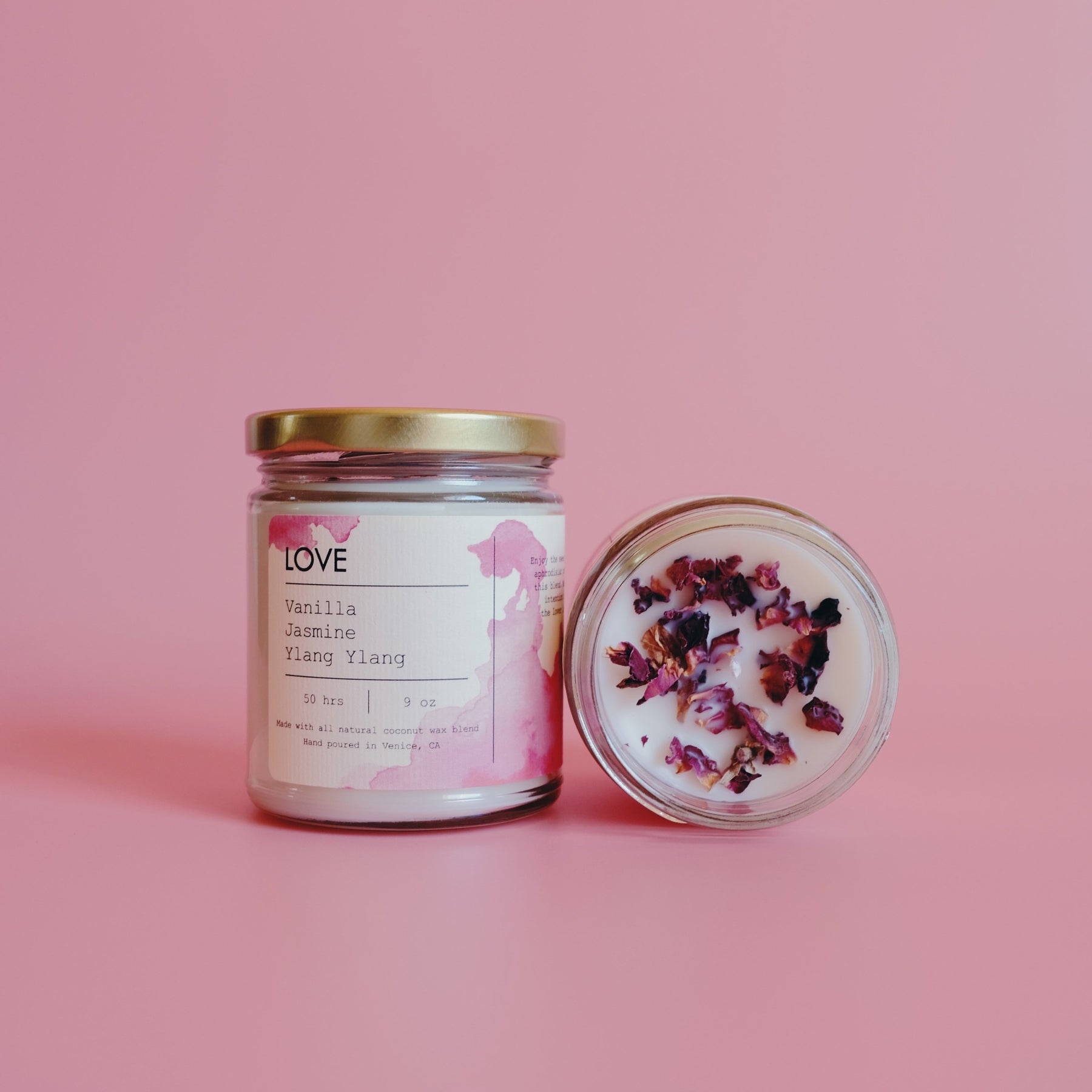 Our limited edition Love Petals Candles are hand-poured with our incredible proprietary wax and sprinkle with lovely organic rose petals on to our original Love candle 🕯