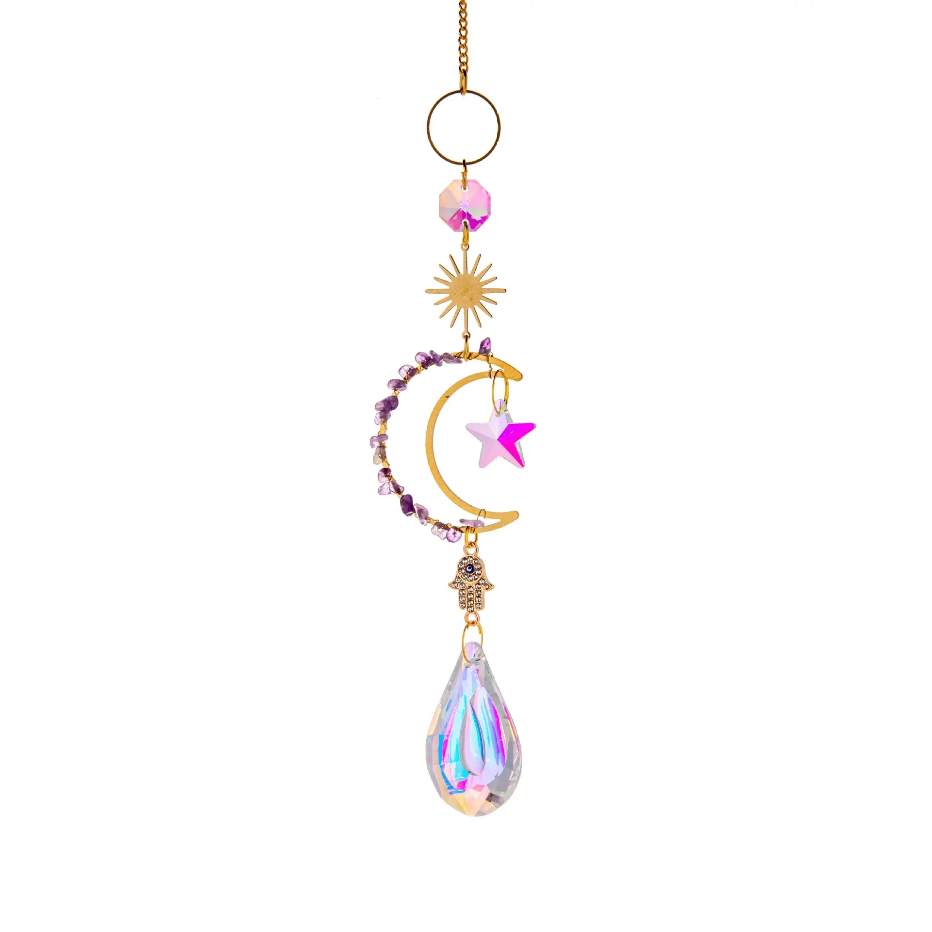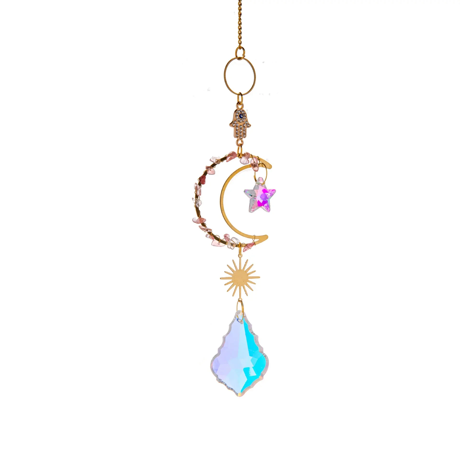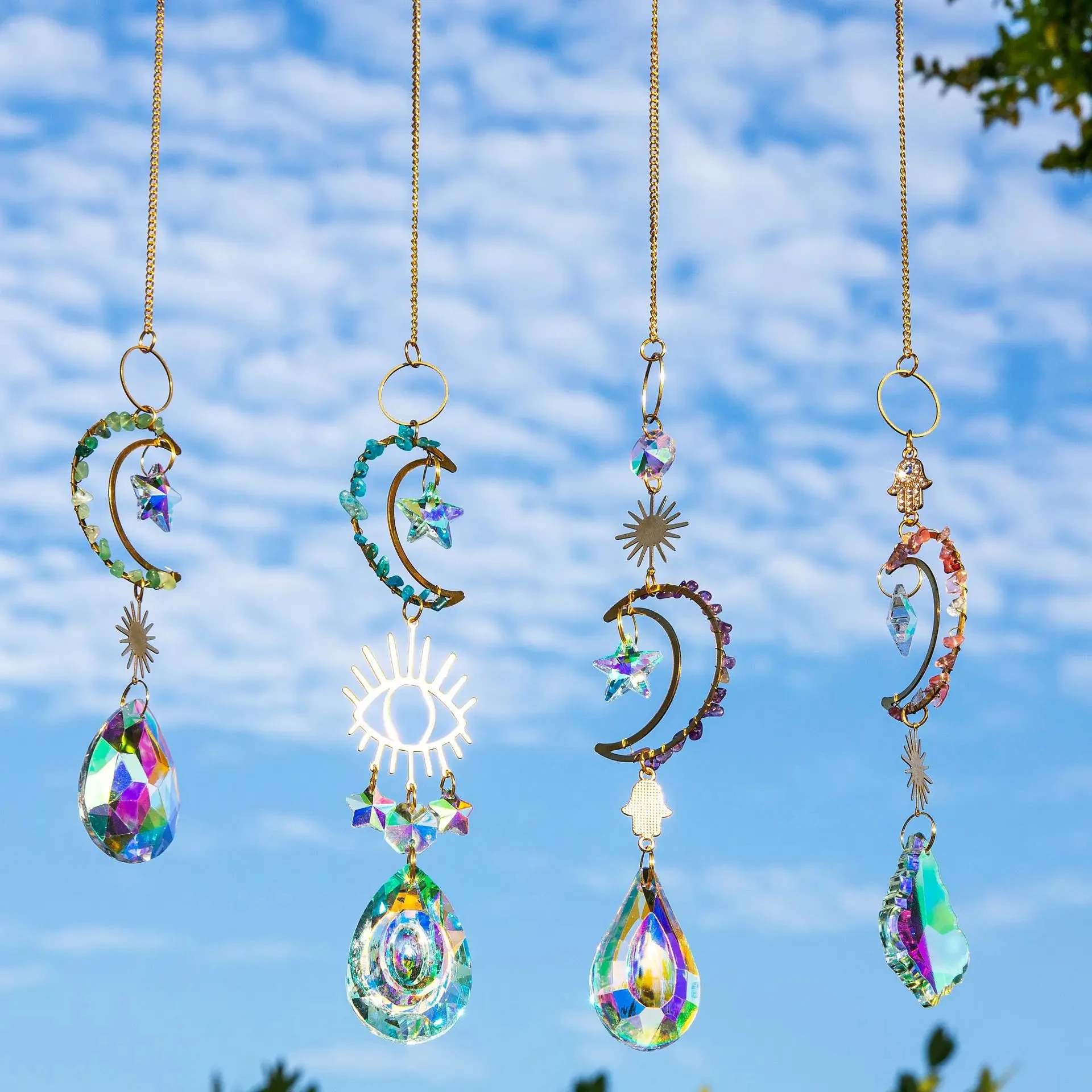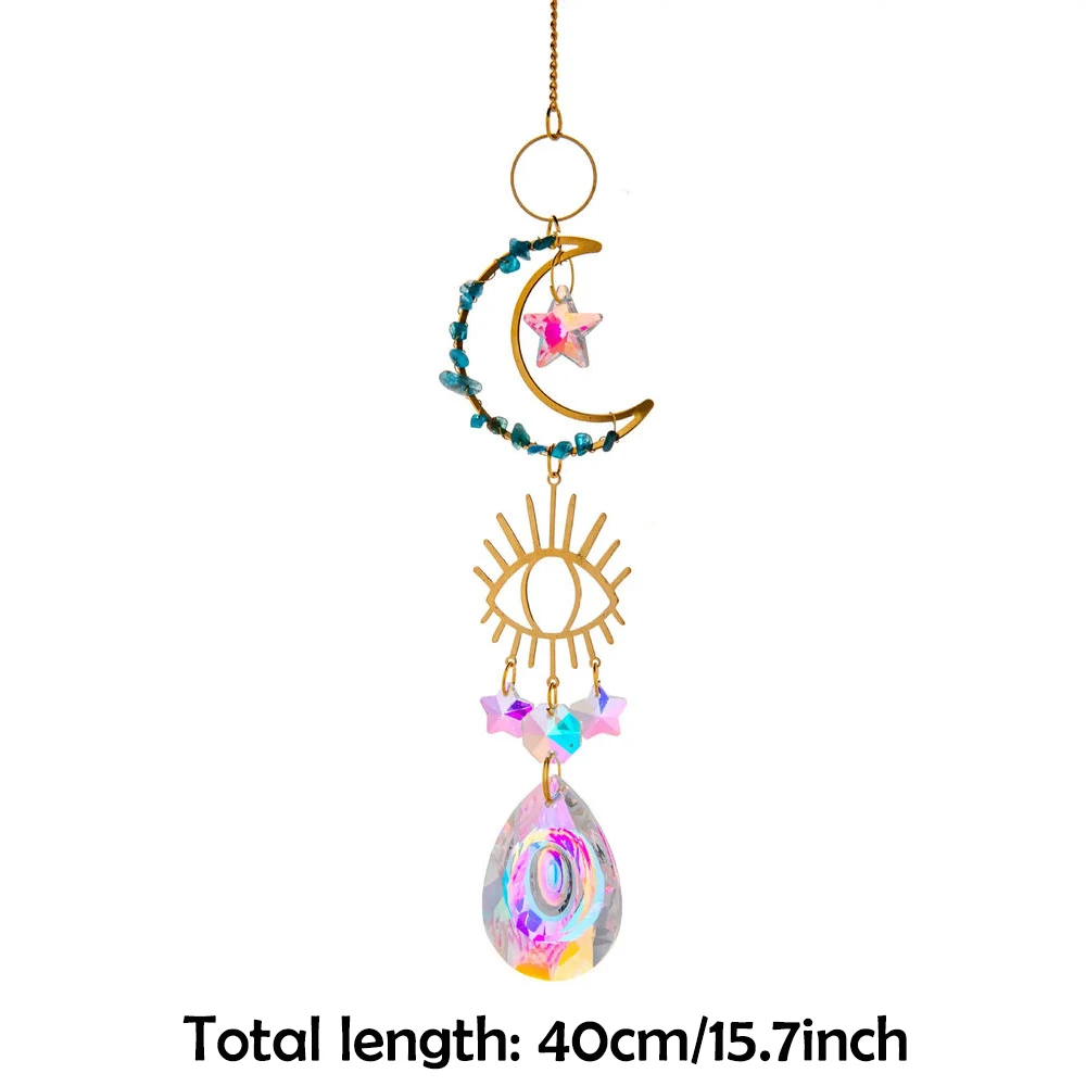 Sun Catcher in the Sky Prism Window Crystal Wind Chime Moon Dream Catcher Natural Stone Wind Chime Sky Garden Decoration