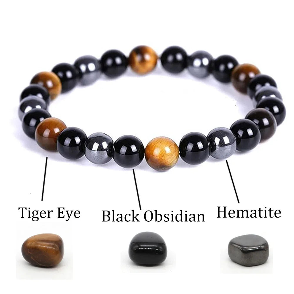 Triple Protection Bracelet Natural Hematite Obsidian Tiger Eye Stone Beads Bracelets Magnetic Health Weight Loss Women Jewelry